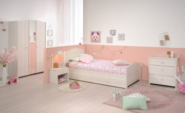 Dječja soba Nina je odličnog dizajna i vrhunske kvalitete. Izrađena je od iverice u kombinaciji sa MDF-mediapanom. Dostupna je u boji jesena sa detaljima roza boje.
