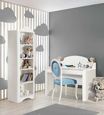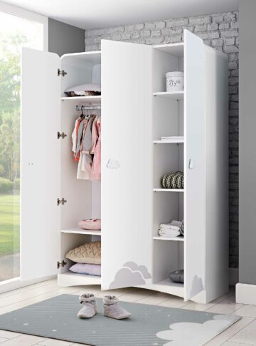 Kolekcija Oblačić sastoji se od zanimljivo oblikovanih proizvoda, koje povezuje simpatični motiv oblaka. Blage i nježne siva i bijela u kombinaciji zaobljenih rubova stvaraju mirnu i ugodnu atmosferu. Vrata i ladice funkcioniraju na sistem mekog zatvaranja, a šipka za vješalice ima LED svjetlo sa senzorom.