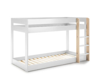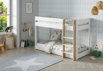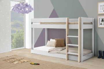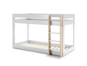 Dječji krevet na kat MONTESSORI ANGEL izrađen je od čvrste konstrukcije od MDF ploča i letvičaste podloge od masivnog bora, što osigurava stabilnost i dug vijek trajanja. Krevet na kat idealno je rješenje za manje dječje sobe, jer omogućuje udoban san za dvoje djece, a pritom ne zauzima previše prostora. Ugrađena ljestva omogućuje jednostavan pristup gornjem krevetu. Zahvaljujući minimalističkom dizajnu, lako se uklapa u različite prostore te osigurava sigurno i udobno okruženje za spavanje.