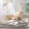 Dječji krevetić Serenity je izrađen u kombinaciji drveta i univera i ima mogućnost fiksiranja uz roditeljski krevet sa podešavanjem visine. Točkići na nožicama omogućavaju lako premeštanje. Ograda je izrađena prema sigurnosti djeteta, a kutovi su zaobljeni. Kolijevka ima mogućnost ljuljanja sa kočionim sistemom, koji omogućava fiksiranje kada je to neophodno. Funkcija ljuljanja obezbediće miran san. Cena uključuje dušek (50 x 90 cm), ukrasni jastuk, pokrivač, meku zaštitnu ogradicu, nosač baldahina i baldahin.