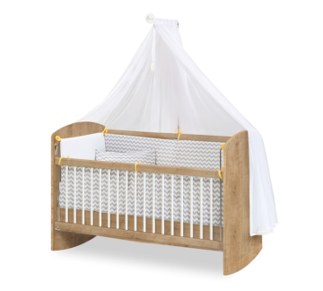 Dječji krevetić White je pogodna za godine djeteta 0-3 i ima maksimalnu nosivost 20 kg. Dostupna je u bijeloj boji i boji hrasta. Uz dodatnu cijenu, kolijevka se lako može pretvoriti u ljuljačku – ljuljački uređaji ugrađu se na noge kolijevke. Ograda je izrađena prema sigurnosti djeteta, a kutovi su zaobljeni. Pogodan je za madrac dimenzija 60 x 120 cm. U cijenu nije uključen madrac i posteljina.