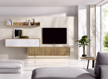 Suvremeni i minimalistički dnevni boravak Compactos 74. Prikaz seta je u kombinaciji boja Nordic i Blanco Liso.