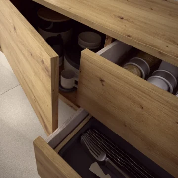 - Vrhunska kvaliteta materijala: Iveral debljine od 1,9 do 3 cm s ABS rubovima. Melamin otporan na ogrebotine i mrlje, koji omogućava jednostavno čišćenje i održavanje.