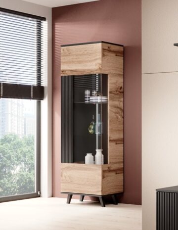 Dnevni boravak Random praktična je i estetski savršena kolekcija za dnevni boravak koja se savršeno uklapa u moderne interijere. Svojom kombinacijom hrasta wotan i crne boje stvara topao, ali moderan kontrast koji prostoru dodaje eleganciju i karakter.
