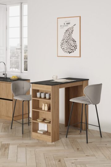 Dopultna barska stolica Maura savršen je izbor za kuhinjske šankove, barove ili blagovaonske prostore. Izrađena je od izdržljivih materijala koji osiguravaju dugotrajnost, dok ergonomski oblik sjedala omogućuje udobno sjedenje i pri duljoj upotrebi. Stabilna metalna konstrukcija doprinosi čvrstoći i modernom izgledu. Zahvaljujući jednostavnom, ali sofisticiranom dizajnu, lako se prilagođava različitim stilovima interijera.