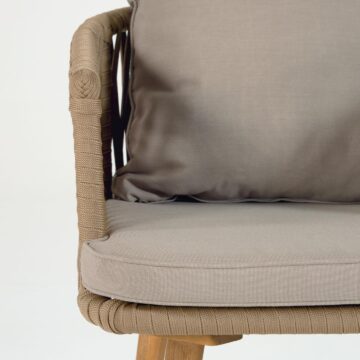 Drvena blagovaonska stolica Hemlice izrađena je s čvrstim nogama od akacije i aluminijskim naslonom, koji su lagani, ali izdržljivi, te s ručno pletenim užetom. Odličan je izbor za one koji traže elegantan i udoban komad namještaja za terasu ili vrt, koji će izdržati vanjske uvjete.