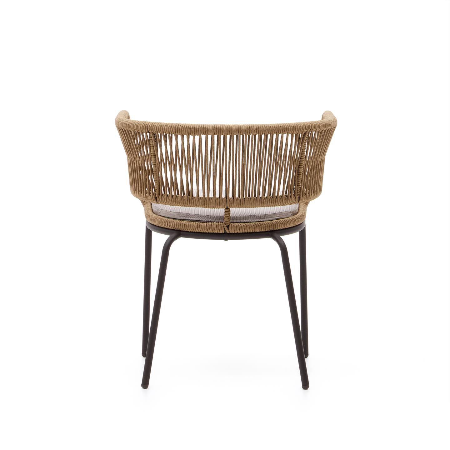 Drvena blagovaonska stolica Nadin kombinira galvanizirani čelik i ručno pleteno uže. S ovim materijalima i modernom bojom, napravite stilski dojam u svojim natkrivenim vanjskim prostorima.