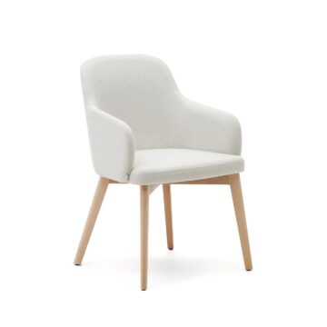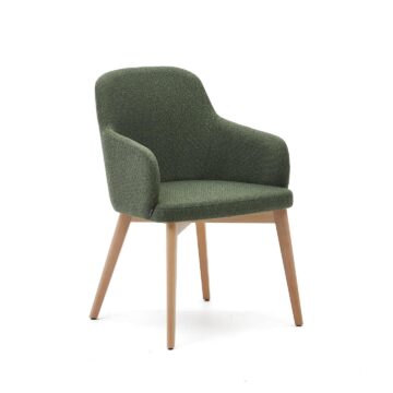 Drveni blagovaonski stol Nelida spaja masivno bukovo drvo, baršun i obloženi naslon s ugrađenim naslonima za ruke, što osigurava maksimalnu udobnost. Njegov bezvremenski dizajn podiže stil vaše blagovaonice.