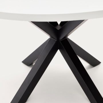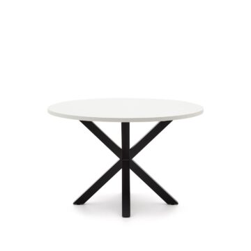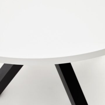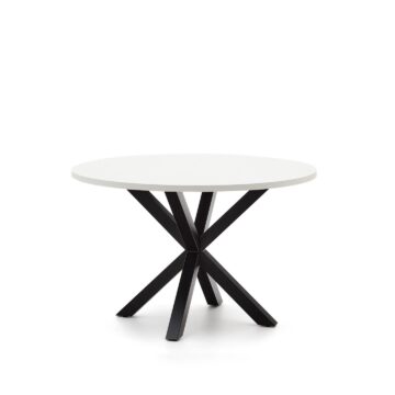 Stvorite moderan i funkcionalan prostor s okruglim blagovaonskim stolom Argo, koji kombinira jednostavnost bijele melaminske površine i kontrast crnih čeličnih nogu. Ovaj stol savršen je izbor za manje blagovaonice ili kuhinje gdje želite stvoriti ugodnu atmosferu za obiteljska okupljanja i posebne prigode.