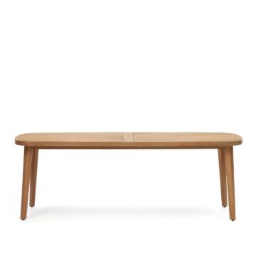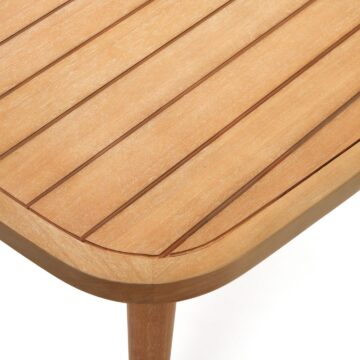 Stol Maset kombinira moderne zaobljene oblike i prirodne materijale, čineći ga savršenim izborom za stvaranje vašeg vanjskog blagovaonskog prostora. Izrađen od masivnog eukaliptusovog drva, lako se prilagođava različitim ambijentima i stilovima.