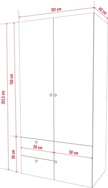 Dvodijelni ormar sa rasvjetom Reli 2, više boja
