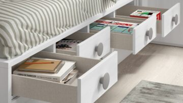 - Krevet s ladicama na meko zatvaranje za krevet 90 x 190 cm i pomoćni ležaj. (Može se naručiti i za dimenziju 90 x 200 cm) širina 101 cm x dužina 204 cm