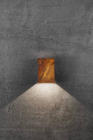 Na zidnom svjetlu iz čelika corten je odabrana najnovija LED tehnologija. Zidno svjetlo svijetli gore-dolje, a četiri uključena svjetlosna uzorka mijenjaju svjetlost po želji. Magnetska sjena olakšava ugradnju bez vidljivih vijaka.