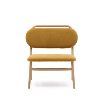 Fotelja Helda u žutoj boji odlikuje klasičan dizajn s modernim dodirom. Izrađena je od masivnog hrastovog drva certificiranog prema FSC Mix Credit standardima, što jamči održivost i odgovorno gospodarenje šumama.