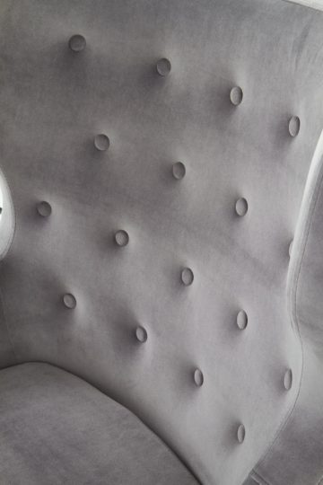 Noge fotelja izrađene su od punog drveta, a naslon i sjedalo presvučeni su baršunastom tkaninom koja je iznimno ugodna na dodir.