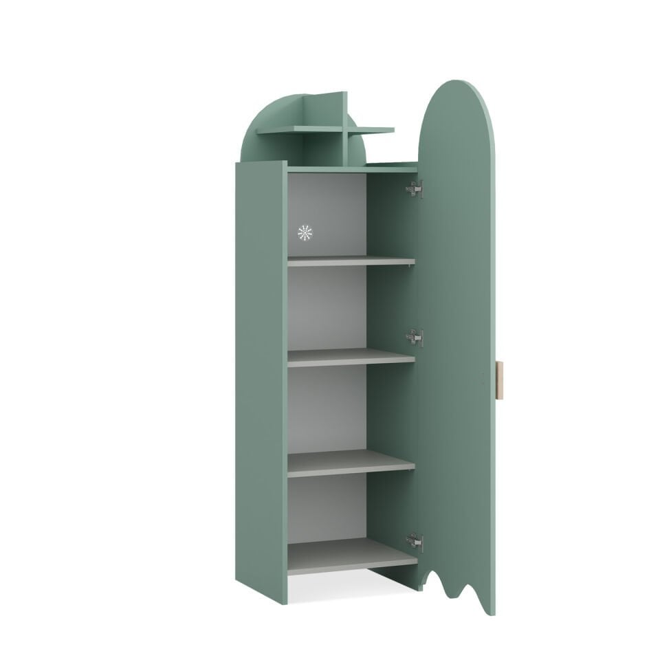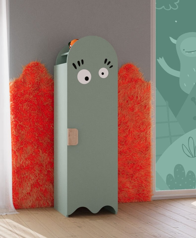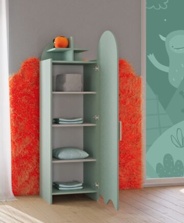 Upoznajte najzanimljivijeg člana Bubo kolekcije – ormar koji svojim iznenađenim očima nježno promatra događanja u sobi i čuva sve male tajne. Ovaj razigrani, a opet minimalistički ormar s jednim vratima nije samo komad namještaja, već pravi mali suputnik iz djetinjstva.