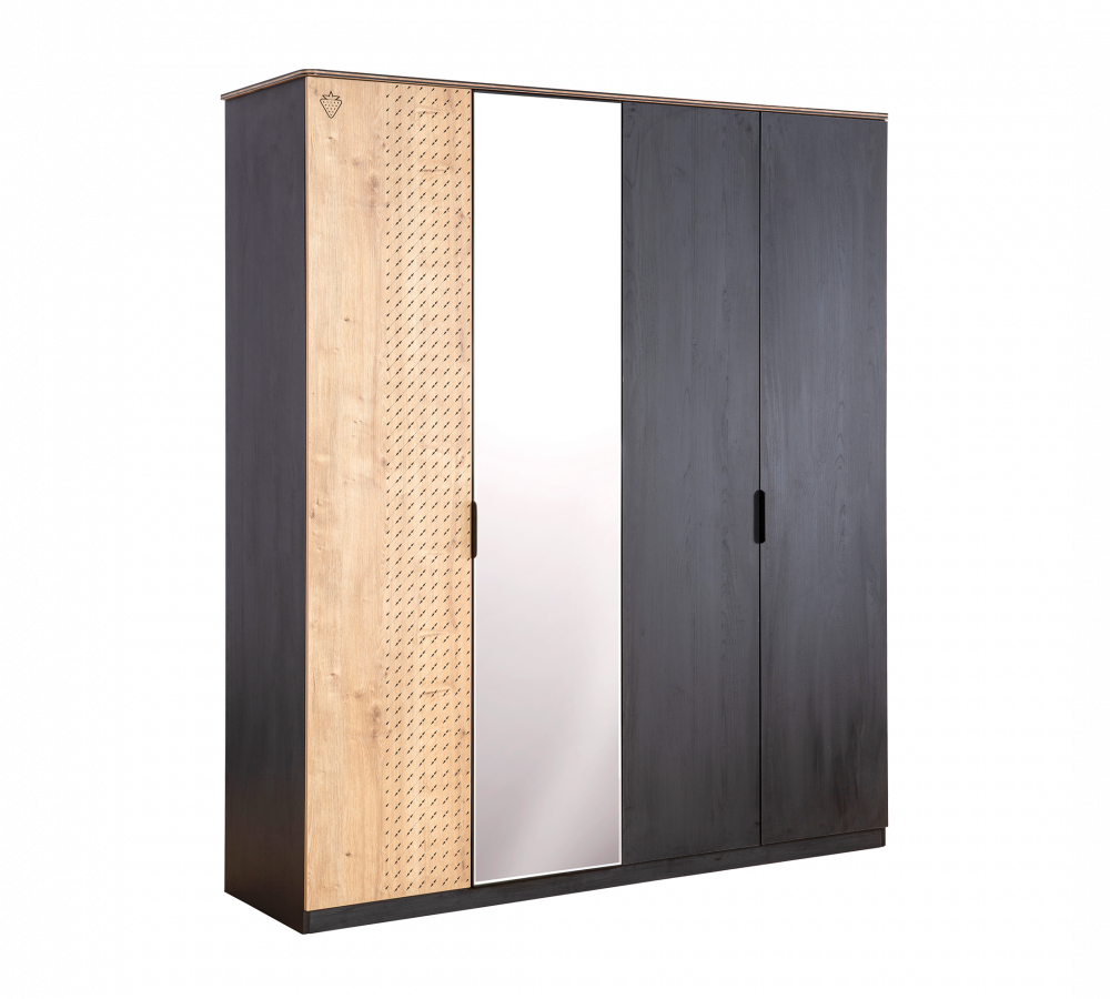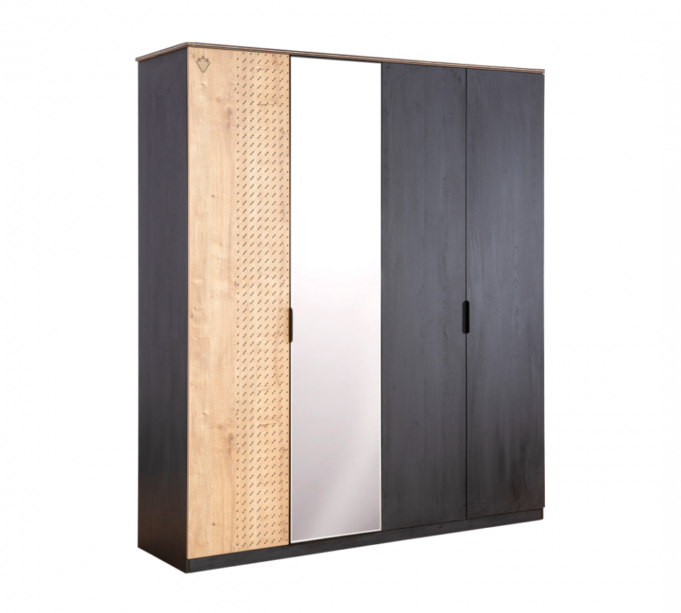 Garderobni ormar Black ima četiri vrata, koja se tiho zatvaraju. Sa svojom veličinom pruža dovoljno prostora za pohranu sve odjeće. U prvom dijelu su dvije police i vješalica sa svjetlom. U drugom dijelu, međutim, nalazi se niz polica. Ormar je zaštićen sa melaminom, što osigurava da se ne pojave ogrebotine.