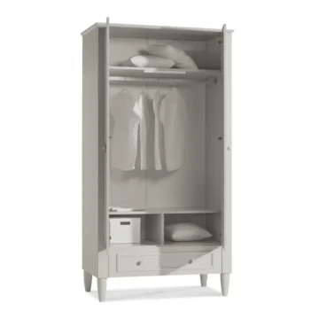 Svojom elegancijom i funkcionalnim karakteristikama Effie dvodijelni ormar prikladan je za sve uzraste i stilove. U mat sivoj boji i minimalističke linije obogatit će ugođaj vaše sobe.