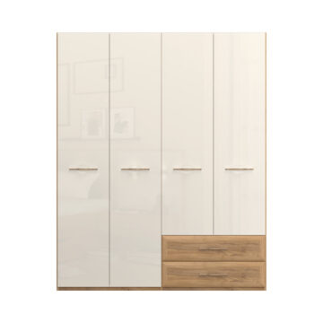 Ormar Gala P42-2/GL ima četiri unutrašnje police i dvije šipke za vješanje. Na dnu ormarića nalaze se dvije ladice na mekano zatvaranje u boji pacifičkog oraha. Korpus je u boji pacifičkog oraha, a vrata od medijapana su u bež boji, lakirana UV lakom koji osigurava 99,70% pokrivnost i postojanost na habanje i udarce. Moguće je dodati dodatne police uz nadoplatu.