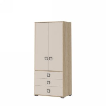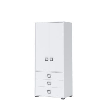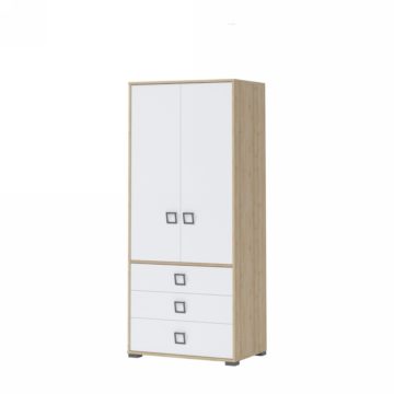 Garderobni ormar Kiki G23 je vrlo koristan i svestran u dječjim i omladinskim sobama, jer je gornja polovica za vješanje, a donja ima tri ladice. Ormar se može kombinirati sa drugim elementima iz Kiki programa i na taj način postići veću fleksibilnost i iskorištenost prostora. Napravljen je od kvalitetne rafinirane ploče poznatog proizvođača, koji osigurava, da su materijali provjerene kvalitete i bezopasni. Svi rubovi su zaštićeni sa ABS robnim trakom. Vrata i ladice se tiho zatvaraju. Ispod su podesive noge, koje osiguravaju uklanjanje svih izbočina.
