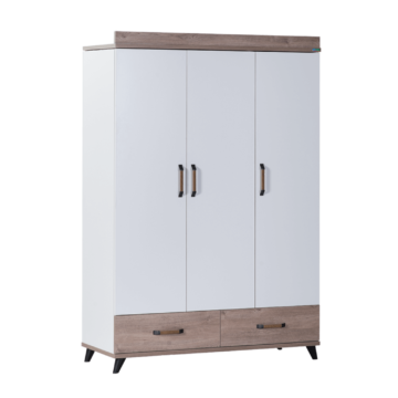 Garderobni ormar Natural odlikuje se trendovskim izgledom. Prostran i suvremen dizajn uključuje više polica i šipku za vješalice sa LED svjetlom. Vrata i ladice imaju ugrađen mehanizam tihog zatvaranja. Izrađen je od oplemenjene iverne ploče i metala. Rubove štiti ABS rubna traka.