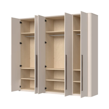 Unutrašnjost ormara iznimno je funkcionalno organizirana – sadrži 6 velikih polica za složenu odjeću ili kutije, 3 manje police te dvije veće i jednu manju garderobnu šipku za vješanje odjeće različitih duljina. Podesive nožice omogućuju stabilno postavljanje čak i na neravnim podovima.
