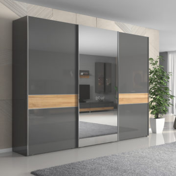 Klizni ormar PK280 / ON iz serije spavaćih soba Onyx če vas zadiviti sa svojim elegantnim izgledom. Korpus je u Antracit lak sivi boji sa dodatkom dekora u Pacifik orah boji. Vrata imaju mehanizam za meko zatvaranje. Unutar ormara devet je polica i tri vješalice.