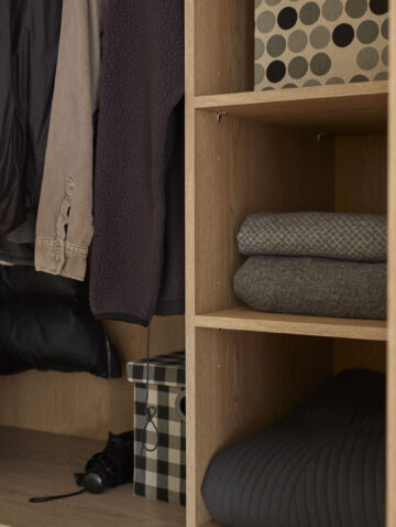 Ormar Stor s praktičnim preklopnim vratima omogućuje da unutrašnjost uredite potpuno prema svojim potrebama. Osvijetljena unutrašnjost osigurava da i u mraku bez problema pronađete topli par čarapa. Možete birati između tri paketa opreme, a dodatnim bočnim modulom dobivate još više prostora za pohranu svojih stvari. Odlično se uklapa u svaki prostor – od predsoblja i garderobe do spavaće i dječje sobe.