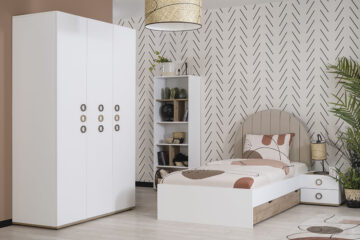 Ovaj trodijelni ormar pažljivo je dizajniran kako bi spojio estetsku savršenost i funkcionalnost potrebnu u mladenačkim i dječjim sobama. Moderan, a istovremeno praktičan dizajn omogućuje jednostavnu integraciju u različite dekorativne stilove, a istovremeno osigurava dugotrajnu uporabljivost i udobnost.