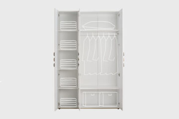 Unutarnji raspored i oprema: U unutrašnjosti se nalaze dvije velike police i četiri manje, koje omogućuju fleksibilno odlaganje raznih stvari. Stup ormara opremljen je LED lampom koja olakšava odabir odjeće i dodaje moderan, funkcionalan element.