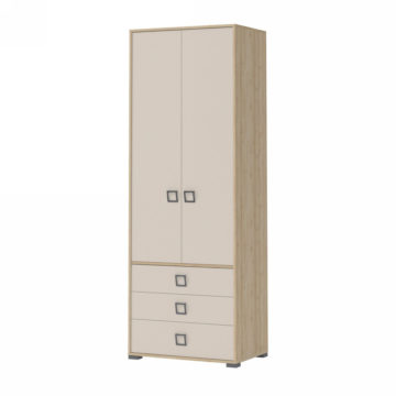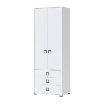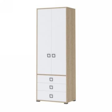 Ormar (visoki) Kiki P23 je vrlo koristan i svestran za dječje i omladinske sobe, jer je gornja polovica za vješanje, a donja ima tri ladice. Ormar se može kombinirati sa drugim elementima iz Kiki programa i na taj način postići veću fleksibilnost i iskorištenost prostora – vrata i ladice se tiho zatvaraju. Napravljen je od kvalitetne rafinirane ploče. Svi rubovi su zaštićeni sa ABS rubnim trakom. Ispod su i podesive noge, koje osiguravaju uklanjanje svih izbočina.
