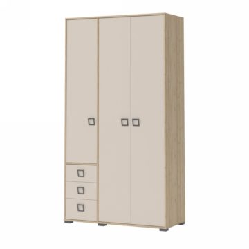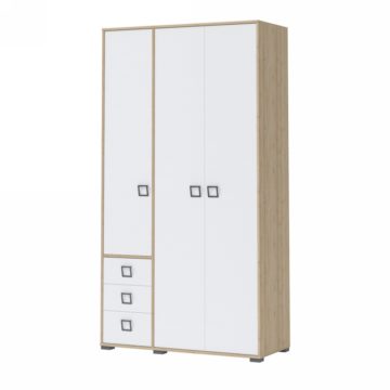 Ormar (visoki) Kiki P33 je pogodan za dječje i omladinske sobe. Je trodijelni ormar u kojem je dvodijelni dio za vješanje, a jednodijelni dio sa policama i ima tri ladice. Ormar se može kombinirati sa drugim elementima iz Kiki programa i na taj način postići veću fleksibilnost i iskorištenost prostora. Napravljen je od kvalitetne rafinirane ploče poznatog proizvođača, koji osigurava, da su materijali provjerene kvalitete i bezopasni. Ima i podesive noge, koje osiguravaju uklanjanje svih izbočina. Vrata i ladice se tiho zatvaraju. Svi su rubovi zaštićeni sa ABS rubnim trakom.