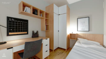 Vrata dodatne jedinice za kutni ormar Simple imaju mehanizam za meko zatvaranje, što je posebno korisno u spavaćoj sobi.