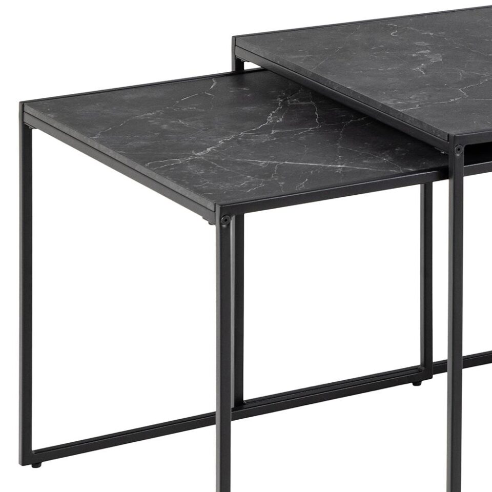 Set stolića Infinity savršen je za dnevne sobe u kojima želite dodati elegantan dodir industrijskog stila. Čiste linije i mramorni izgled stvaraju moderan izgled koji možete upotpuniti svježim cvijećem, svijećama ili dekorativnim predmetima. Stolići se mogu koristiti odvojeno ili zajedno, što osigurava veću prilagodljivost prema potrebama prostora.