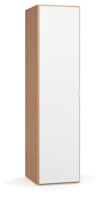 Jednokrilni garderobni ormar Simple idealan je izbor za manje prostore ili kao dopuna većim garderobnim sastavima iz kolekcije Simple. Unatoč kompaktnoj veličini omogućuje učinkovitu organizaciju odjeće jer je njegova unutrašnjost osmišljena s fokusom na svakodnevne potrebe korisnika.
