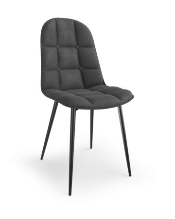 Metalna blagovaonska stolica K417 elegantnog je i modernog dizajna sa sjedalom i naslonom od bogate baršunaste tkanine. Posebnost je četvrtasto prošivanje koje stolici daje teksturu i time dodatno obogaćuje dizajn same stolice. Noge su metalne.