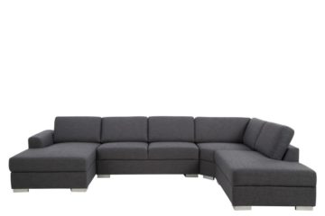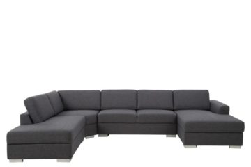 Kauč Adelanto je napravljen od Dallas tkanine ili od umjetne kože (doplata) antracit sive boje. Nogice su metalne u boji brušenog čelika.