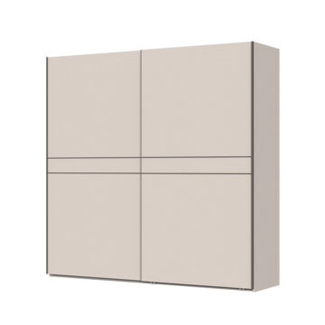 Drsni garderobni ormar Kalla Opera PK231 moderan je i funkcionalan komad namještaja iz kolekcije spavaćih soba Opera, koji nudi obilje prostora za organiziranu pohranu. S dimenzijama 230 cm širine, 224 cm visine i 61 cm dubine, uključuje dvoja klizna vrata, dvanaest polica i četiri garderobne šipke, što omogućuje praktično pohranjivanje. Soft mat UV lak u boji kašmira na vratima, stranicama i frontama osigurava profinjen izgled, dok Hettich okovje i soft-close mehanizam jamče dugotrajnu i udobnu uporabu.