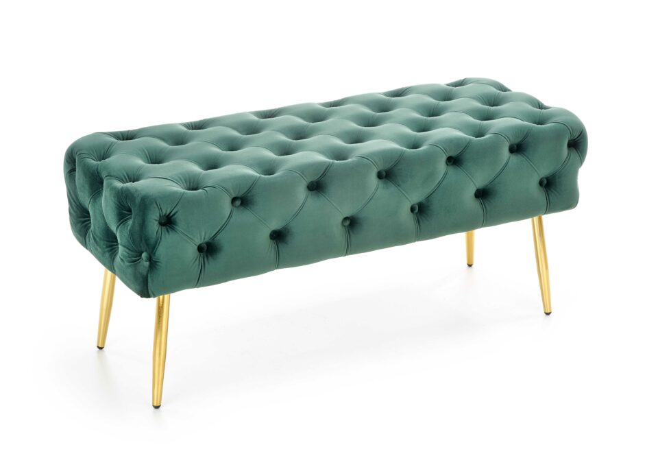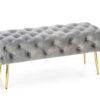 Klop Athena spaja eleganciju glamura i praktičnost. Oblikovana je s mekanom baršunastom tkaninom koja daje dojam luksuza, dok metalne noge u zlatnoj boji dodaju moderan kontrast. Zahvaljujući kompaktnim dimenzijama, pogodna je za predsoblje, dnevni boravak, spavaću sobu ili garderobu.