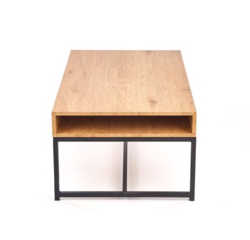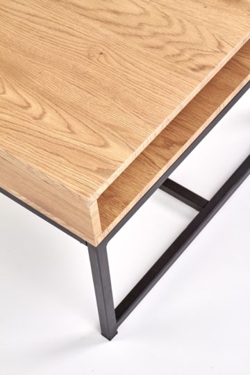 Klub stol Adelle izrađen je od laminiranog mediapana. Ploča stola je u boji zlatnog hrasta, a podnožje je metalno i prašno presvučeno u crnoj boji. Klub stol sadrži police i je modernog izgleda.