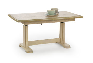 Klub stol Tymon lako se podiže i rasteže kako je prikazano na slici. Izrađen je visokokvalitetno – ploča je izrađena od laminirane mdf ploče, a noge su od masivnog drveta bukve.