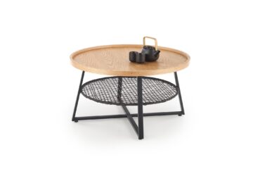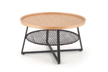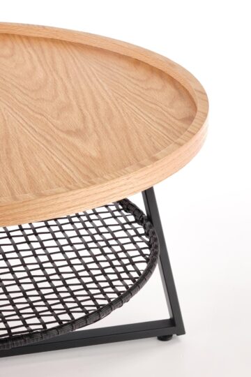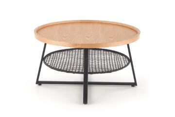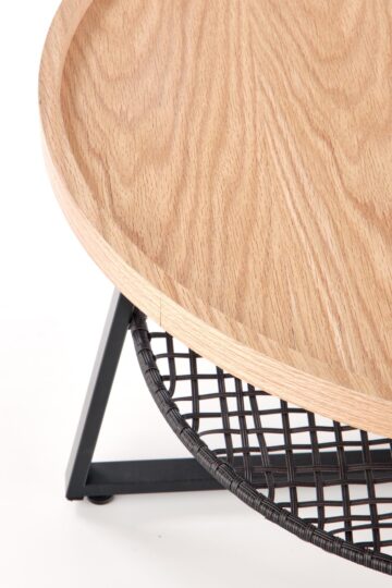 Jednostavno dizajniran stolić FLORENCE kombinacija je crnog čeličnog podnožja i okrugle drvene ploče od laminiranog MDF-a u boji hrasta. Stol ima i mrežastu površinu za odlaganje od umjetnog ratana. Moderan dizajn i kvalitetna izrada karakteristike su stola koji će idealno upotpuniti vaš prostor.