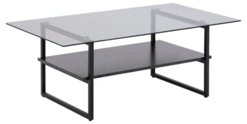 Klasika među klubskim stolićima zasigurno je Stakleni stolić za dnevni boravak Okaya kojeg vam ovog puta predstavljamo u dvije verzije. Obje sadrže staklenu gornju površinu u dimljenoj nijansi (debljina stakla je 6mm). Razlikuju se po donjoj polici. Birati možete između visokokvalitetnog melamina obojanog u crnu boju ili u nijansu divljeg hrasta.