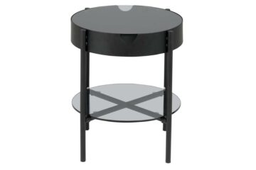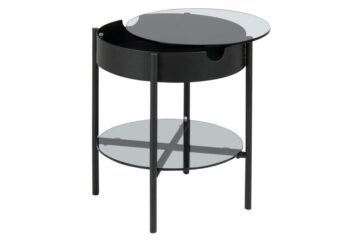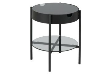 Okrugli stakleni stolić za dnevni boravak Tipton 2 kao i njegov veči predhodnik nosi ponosan naziv kvalitete i praktičnosti. Okrugli stakleni stolić za dnevni boravak sadrži staklenu gornju površinu te policu i prostor za pohranjivanje manjih stvari. Okvir klubskos stolića je metalan i prašno obojan u crnu boju. Svoju kvalitetu dokazuje sa brižno odabranim materialom, dok praktičnost kao stolić upotrebljiv u više namjena.