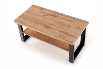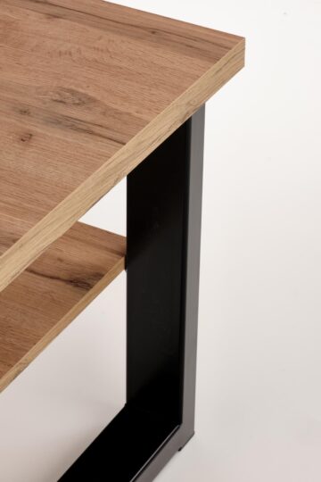Simpatičan klub stolić sa policom i čeličnim postoljem. Pravokutnih oblika i elegantne kombinacije boja. Izrađen je od laminirane iverne ploče, zaščitečene sa ABS rubnom trakom.