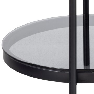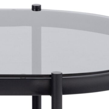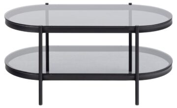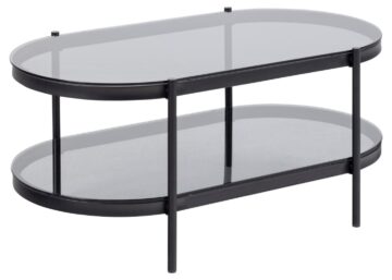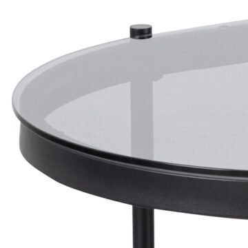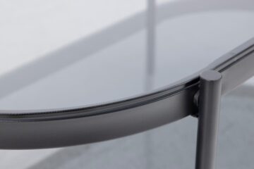 Suvremeni dizajn: Ovalni oblik stolića kombinira dimljeno staklo s mat crnom metalnom podlogom, stvarajući elegantnu i sofisticiranu estetiku koja se uklapa u svaki moderni prostor.