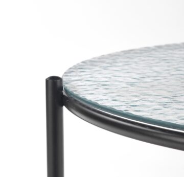 - Materijal: Ploča stolića izrađena je od prozirnog stakla, što proizvodu daje dojam lakoće i modernosti. Staklena ploča osigurava da stolić za kavu ne izgleda preglomazno, unatoč svojoj veličini. Baza stola izrađena je od čelika obloženog prahom, što osigurava stabilnost i izdržljivost te daje elegantan kontrast staklenoj ploči.