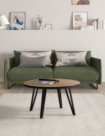 Okrugli stolić za kavu Sindi ima promjer 80 cm i visinu 45 cm. Izrađena je od oplemenjenog iverala u prirodnoj nijansi i Bocamina kant ruba.