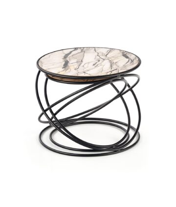 Ova kombinacija materijala, boja i oblika čini Okrugli Okrugli stolić za dnevni boravakić “SAUSSANNA” atraktivnim i funkcionalnim dodatkom modernog doma ili poslovnog prostora.