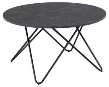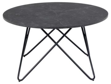 Wyre stolić za kavu kombinira modernu sofisticiranost sa šarmom iz sredine stoljeća. Okrugli vrh s izgledom crnog mramora nudi stiliziranu površinu za postavljanje manjih ukrasnih predmeta, dok crna geometrijska baza od čelične žice daje razigran štih. Ovaj stolić za kavu pristaje uz eklektičan i minimalistički stil interijera.